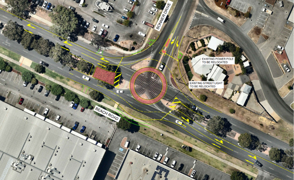 Beach Road and Bonner Drive have unusually high traffic volumes and the intersection of the two roads is controlled using give-way signs and line marking. This form of intersection control is now inadequate to safely manage traffic at this intersection, and an alternative intersection type is needed.