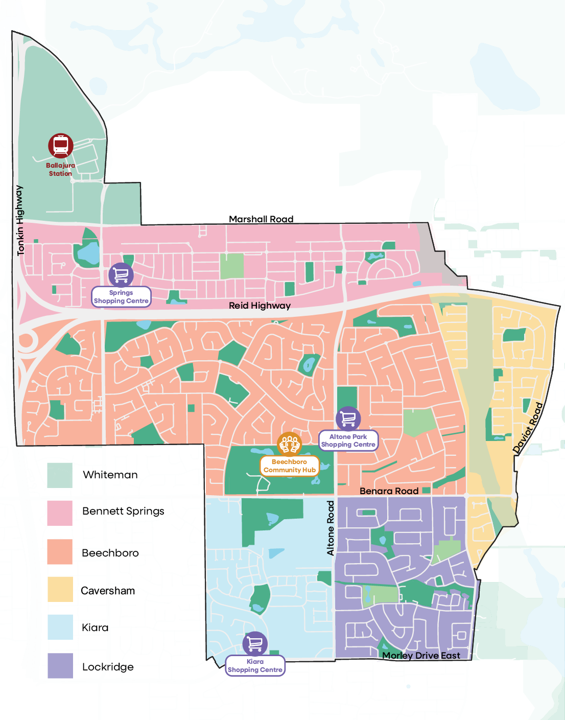 If you live, work or visit Beechboro, Bennett Springs, Kiara, Lockridge, or the surrounding areas of Caversham and Whiteman, we want you to get involved by voting on the priorities that matter most to you and sharing your ideas for Altone's future.